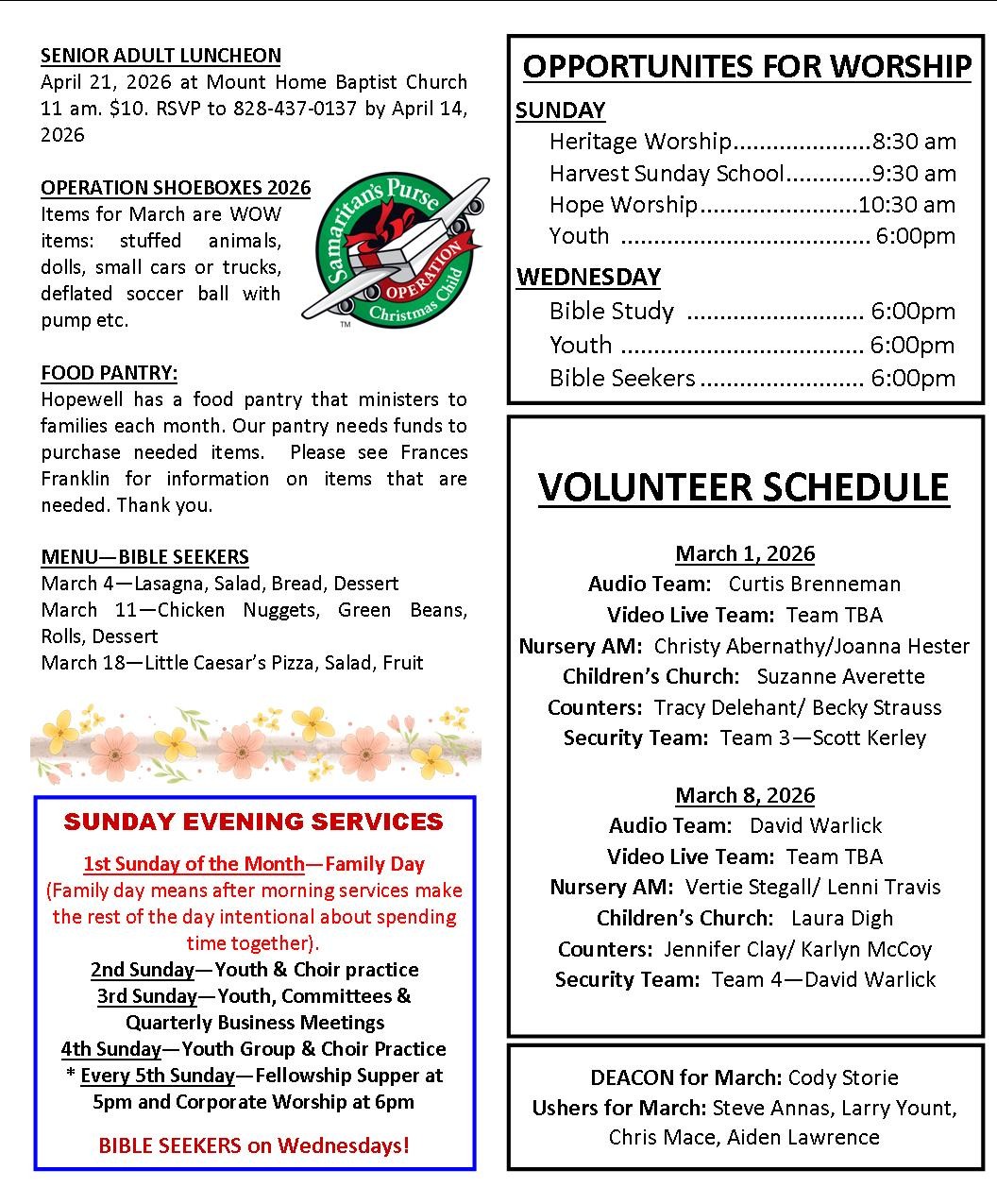 Participate in the myriad of opportunities here at Hopewell Baptist that foster community spirit and the Spirit of Christ.