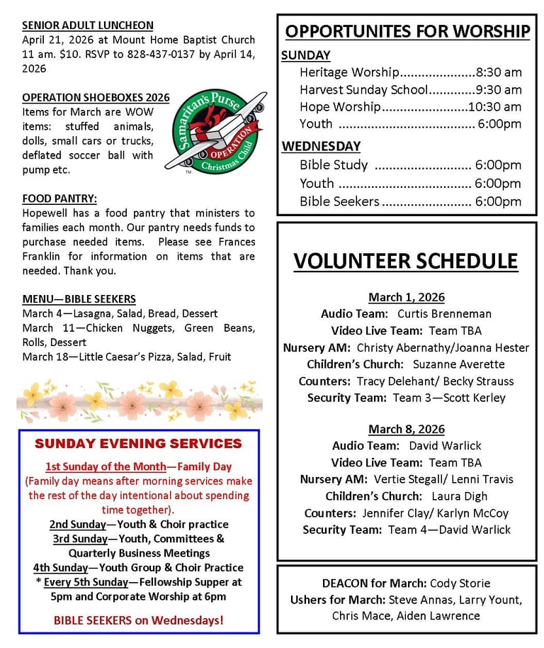 Hopewell Baptist is an older church, but the Lord has blessed us in this season with a thriving and growing group of young to middle-aged adults.