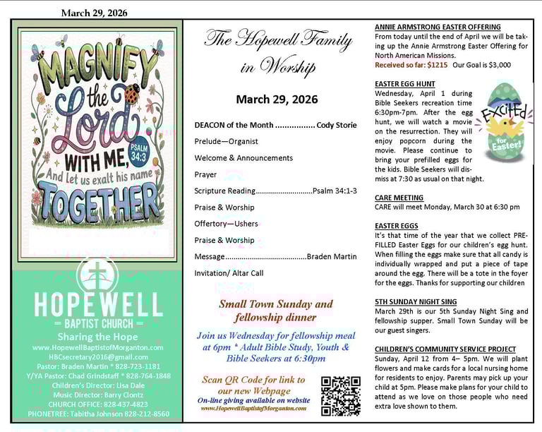 Participate in the myriad of opportunities here at Hopewell Baptist that foster community spirit and the Spirit of Christ.