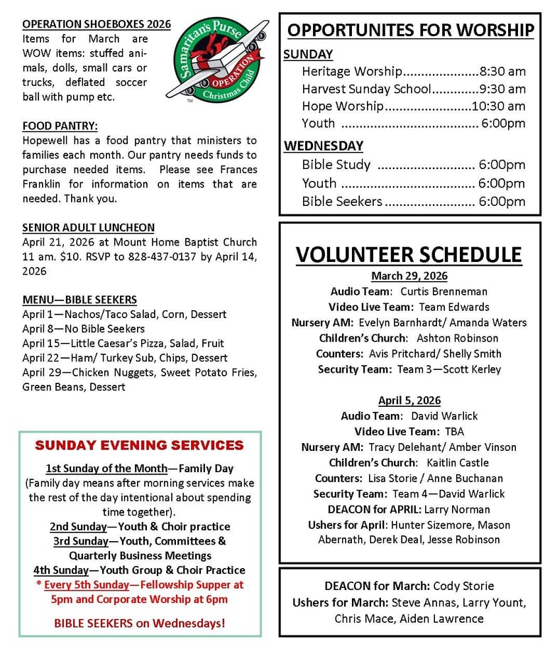 Hopewell Baptist is an older church, but the Lord has blessed us in this season with a thriving and growing group of young to middle-aged adults.